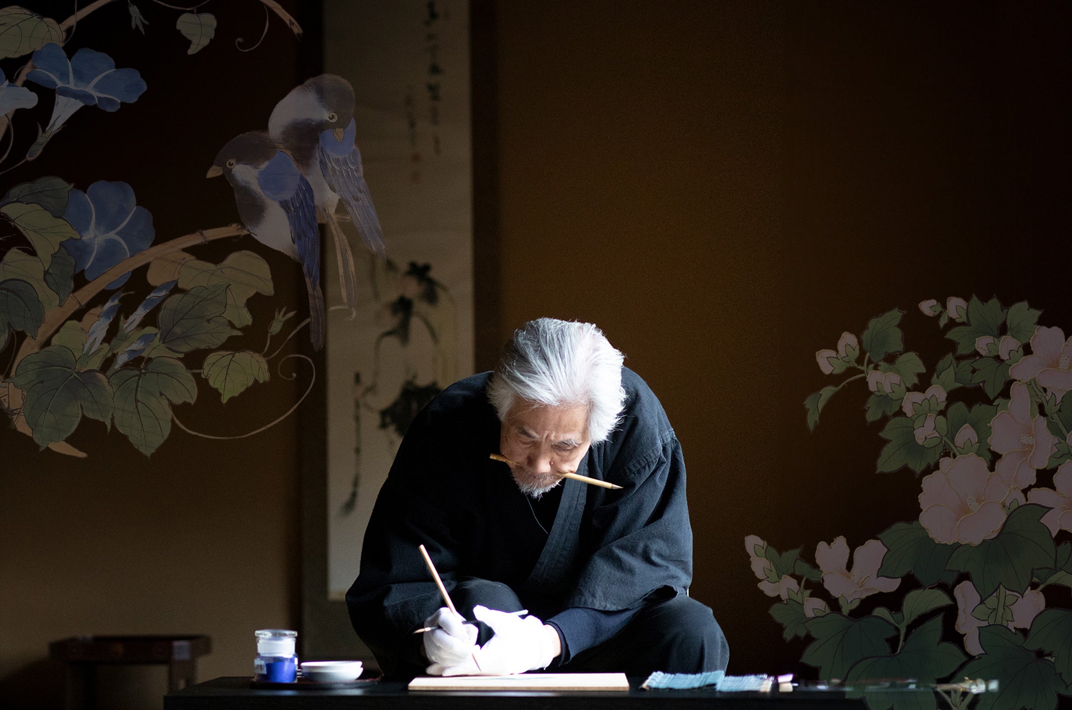 日本で唯一の宮絵師 安川如風(にょふう)が、長年にわたり神社仏閣の天井画や襖絵、彩色修復を手がけてきた技術と精神を、日々の暮らしの中で感じていただける作品へと昇華させました。