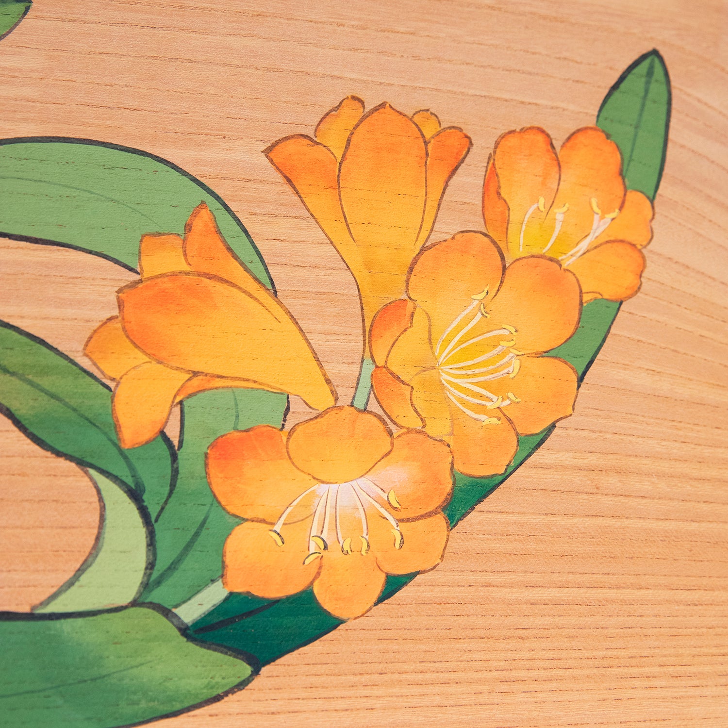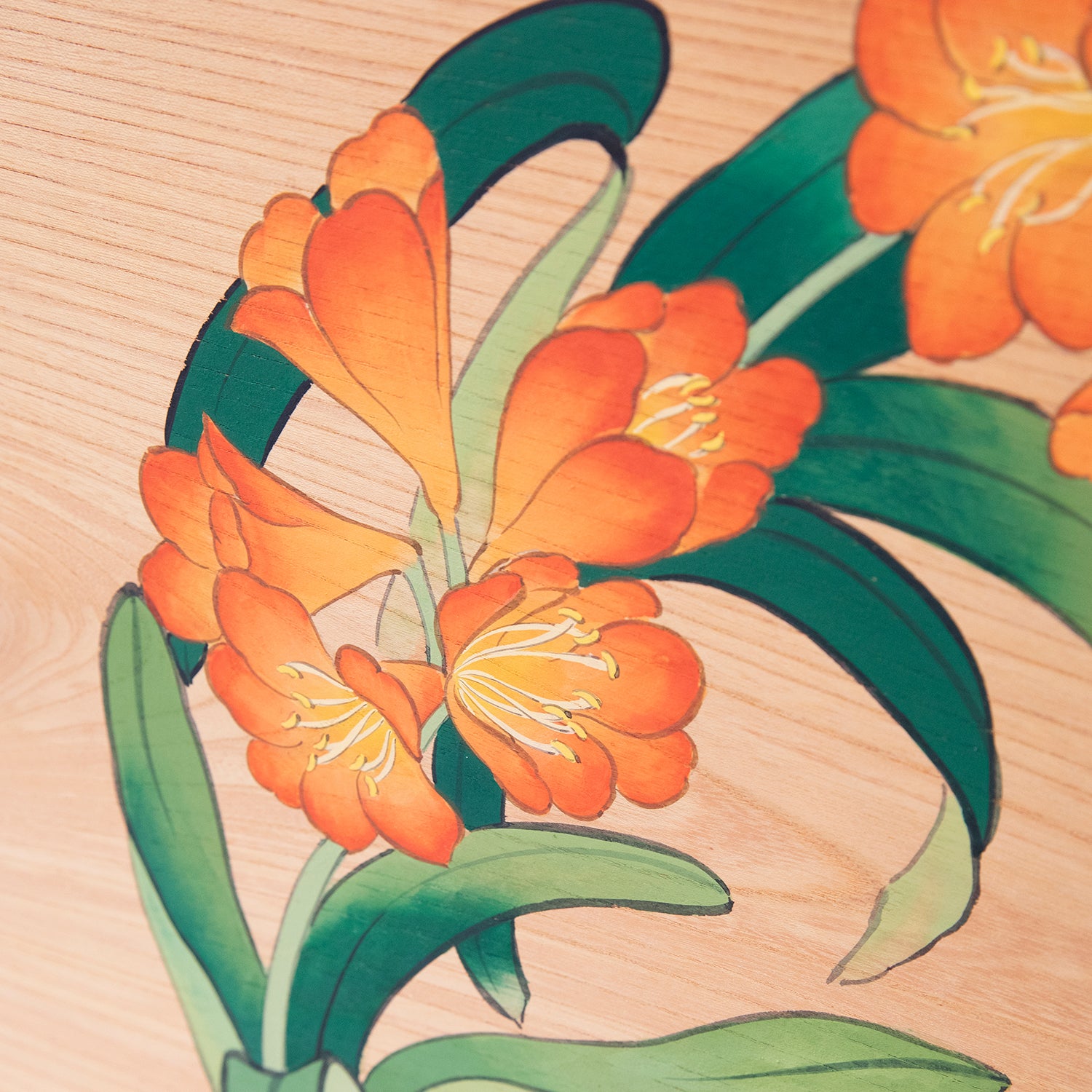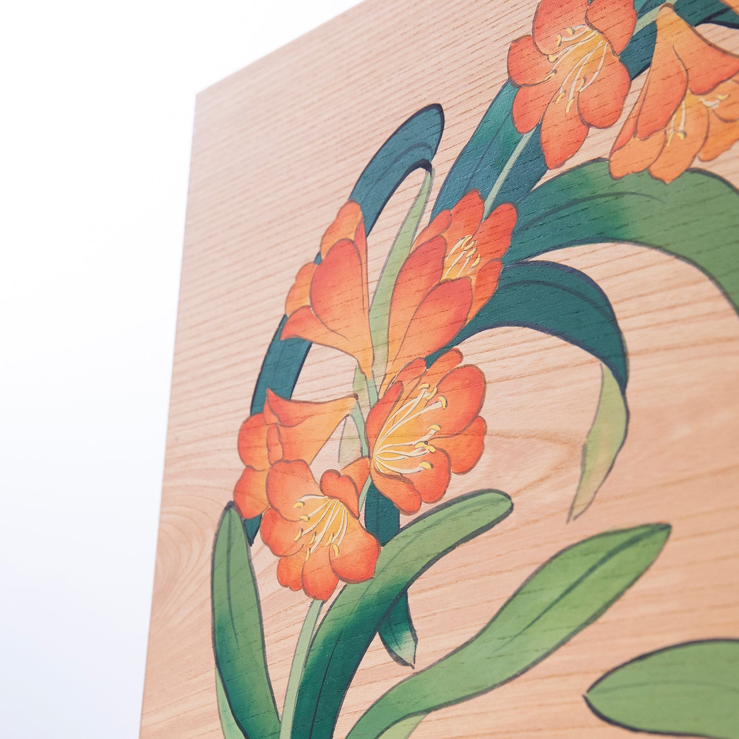 3~5月ごろに開花するヒガンバナ科の植物。正確な和名はウケザキクンシラン(受け咲き君子蘭)といい、南アフリカ原産の植物です。日本には明治時代に渡来し、以降観賞植物として愛好されています。君子蘭は花だけでなく、つややかな葉や開花後にみられる鮮やかな赤色の果実も観賞対象として楽しむことができるのも特徴的です。